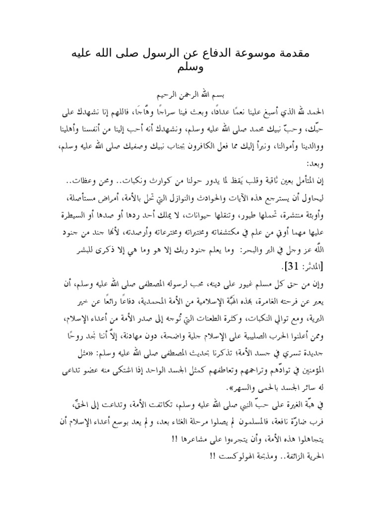 موسوعة الدفاع عن الرسول صلى الله عليه وسلم المقدمة